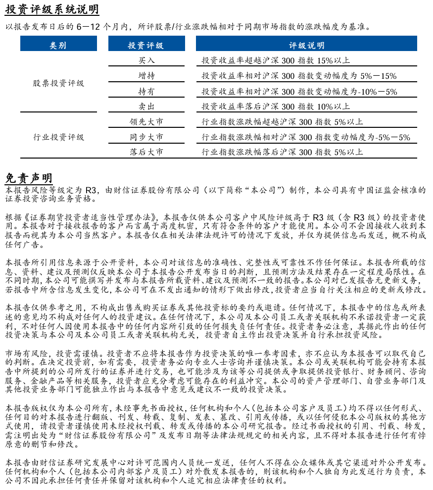 根据《证券期货投资者适当性管理办法》及《证券经营机构投资者适当性管理实施指引(试行)》的规定,通过新媒体形式制作的本订阅号推送信息仅面向财信证券研究服务客户中的风险承受能力为C3、C4、C5的投资者,请勿对本订阅号推送信息进行任何形式的转发或者、转载行为。若您并非财信证券研究服务客户中风险承受能力为C3、C4、C5的投资者,请取消关注本订阅号,请勿订阅、接收或使用本订阅号中的任何推送信息。