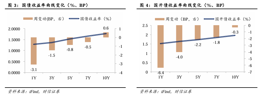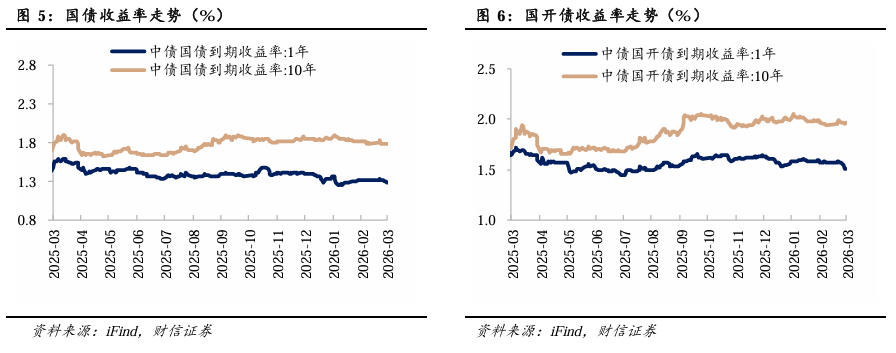 国债、国开债收益率曲线陡峭化。截至3月6日,1年期国债收益率收于1.29%,较前一周下行3.1BP;10年期国债收益率收于1.78%,较前一周上行0.6BP。1年期国开债收益率收于1.51%,较前一周下行6.4BP;10年期国开债收益率收于1.96%,较前一周下行0.3BP。